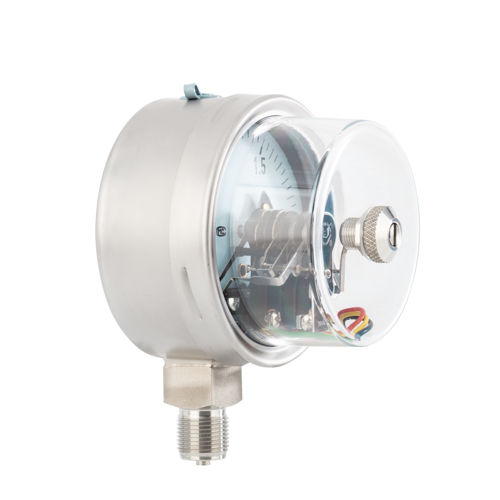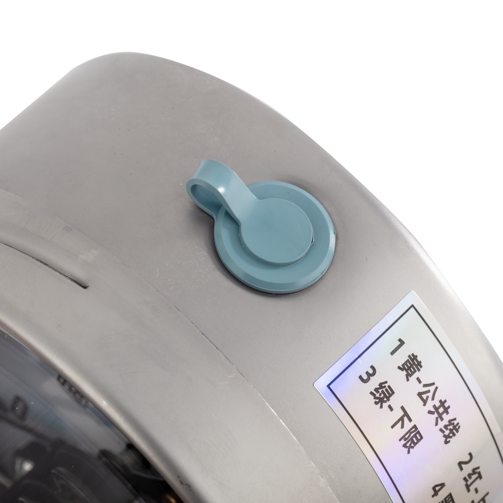 电接点压力表的表盘内部包含一个弹性敏感元件(如弹簧管或膜盒),当被测介质(液体或气体)的压力作用于敏感元件时,其发生弹性形变。这种形变通过机械传动机构(如齿轮、连杆)转化为指针的旋转运动,从而在表盘上显示当前压力值。例如,当压力升高时,弹簧管向外扩张,驱动指针顺时针转动;压力降低时则反向运动。