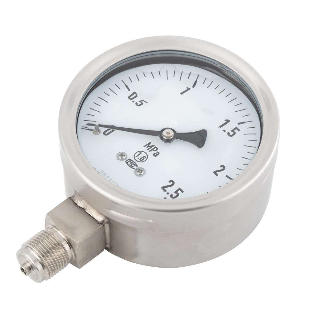 耐震压力表的工作原理基于弹性力学和流体阻尼原理。当被测介质通过接口进入仪表内部时,压力作用于弹簧管或膜片上,使其产生相应的弹性变形。这种变形通过机芯传动机构放大,驱动指针在刻度盘上指示出压力值。在振动环境中,内部填充的阻尼液会形成缓冲层,抑制机械振动和压力脉动对指针的影响。液体的高粘性能量耗散特性,使得指针不会剧烈晃动,而是平稳地指向实际压力值,从而确保测量结果的准确性和可读性。